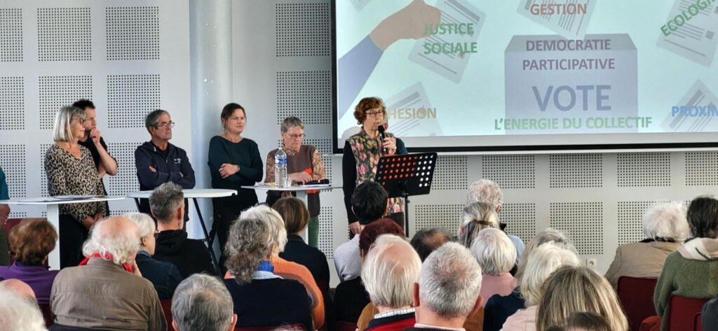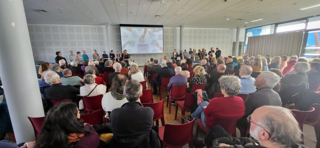 Dès l’installation des chaises, du vidéoprojecteur et de la table pour le pot final, l’ambiance était déterminée et joyeuse. Notre diaporama présenté avec les différents thèmes de la campagne, à savoir, la solidarité, le logement, l’éducation, la culture ou encore l’écologie, la parole était à Vous !